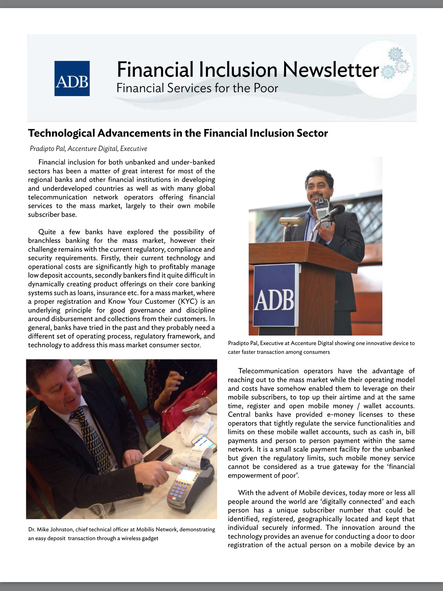 – Enable user on-boarding process from handheld portable POS terminal, to cover the rural area in developing countries (for Financial Inclusion use cases)